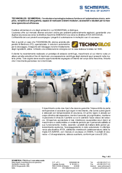 Non è quindi un caso che TECHNOSILOS, storica azienda alle pendici di Bertinoro (FC), specializzata in soluzioni automatiche per lo stoccaggio, il trasporto ed il dosaggio nonché il trattamento degli ingredienti, abbia richiesto una collaborazione sinergica con la casa tedesca fondata nel 1945.